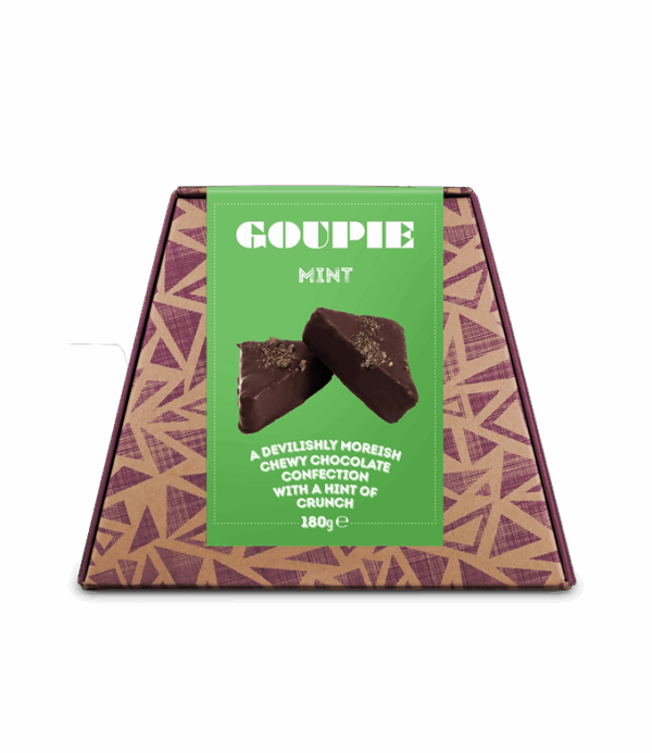 ”Goupie” on ronskin kokoinen suklaalla kuorrutettu herkkupala. Sen resepti on peräisin eräältä brittiläiseltä isoäidiltä, jonka jalanjäljissä nyttemmin toimii The Goupie Factory. Vegaanisia suklaaherkkuja valmistavaa perheyritystä pyörittää äiti-tytär-tiimi; Vegekauppakin asioi siis suoraan valmistajien kanssa.