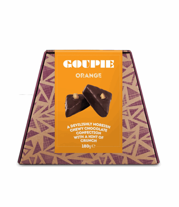 ”Goupie” on ronskin kokoinen suklaalla kuorrutettu herkkupala. Sen resepti on peräisin eräältä brittiläiseltä isoäidiltä, jonka jalanjäljissä nyttemmin toimii The Goupie Factory. Vegaanisia suklaaherkkuja valmistavaa perheyritystä pyörittää äiti-tytär-tiimi; Vegekauppakin asioi siis suoraan valmistajien kanssa.
