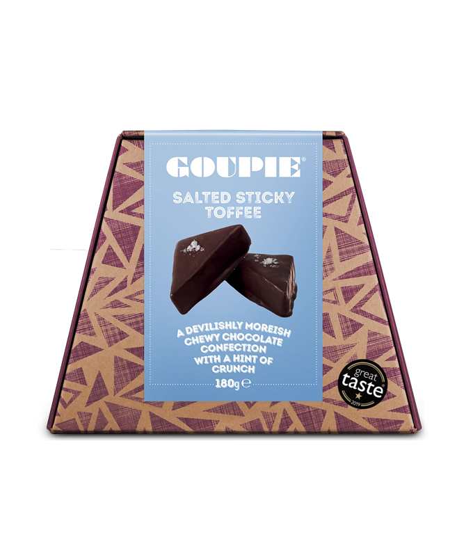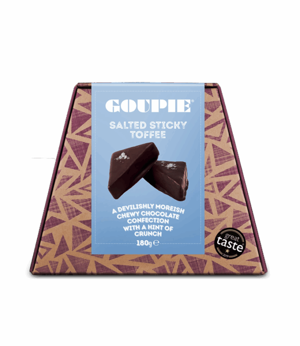 ”Goupie” on ronskin kokoinen suklaalla kuorrutettu herkkupala. Sen resepti on peräisin eräältä brittiläiseltä isoäidiltä, jonka jalanjäljissä nyttemmin toimii The Goupie Factory. Vegaanisia suklaaherkkuja valmistavaa perheyritystä pyörittää äiti-tytär-tiimi; Vegekauppakin asioi siis suoraan valmistajien kanssa.