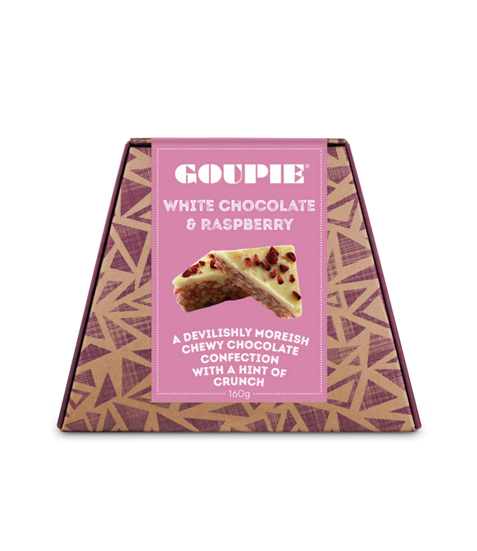 ”Goupie” on ronskin kokoinen suklaalla kuorrutettu herkkupala. Sen resepti on peräisin eräältä brittiläiseltä isoäidiltä, jonka jalanjäljissä nyttemmin toimii The Goupie Factory. Vegaanisia suklaaherkkuja valmistavaa perheyritystä pyörittää äiti-tytär-tiimi; Vegekauppakin asioi siis suoraan valmistajien kanssa.