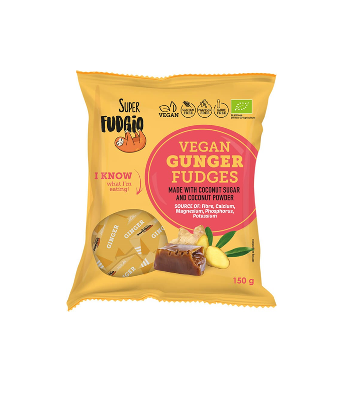 Super Fudgion gluteenittomat, vegaaniset luomufudget vievät kielen mennessään! Herkullisena kausimakuna inkivääri.